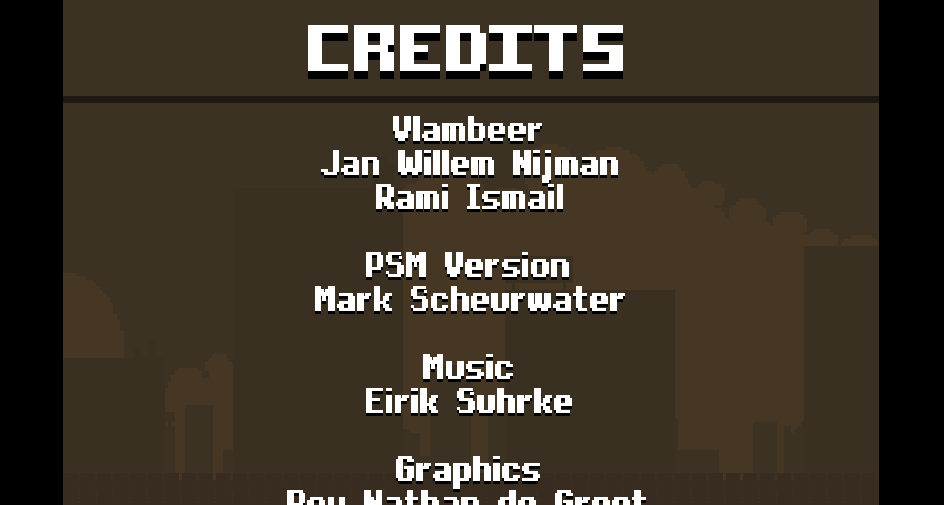 At the start of the summer in 2012 I heard that Vlambeer was looking for a C# programmer for an undisclosed project, I applied. Thes project happened to be porting Super Crate Box to the Playstation Mobile platform, which runs on the Playstation Vita and certified Android devices. The project had to be made in one month, as the game had to be shown on GamesCom 2012 in Cologne, Germany.
