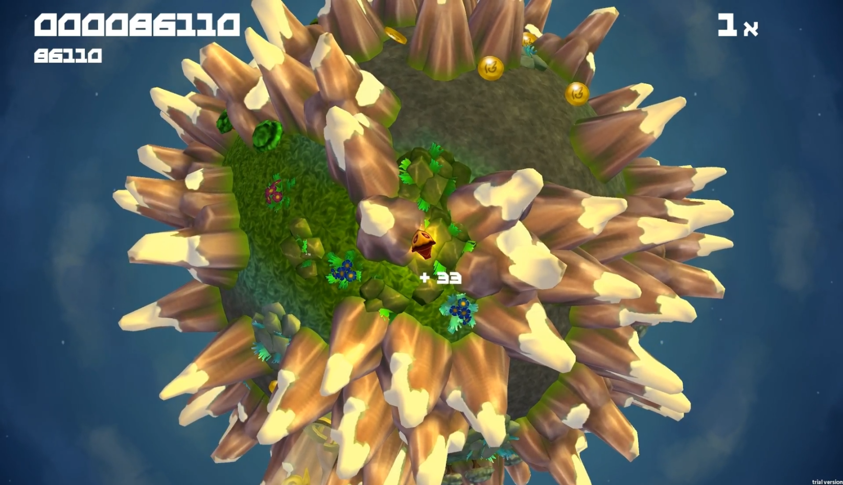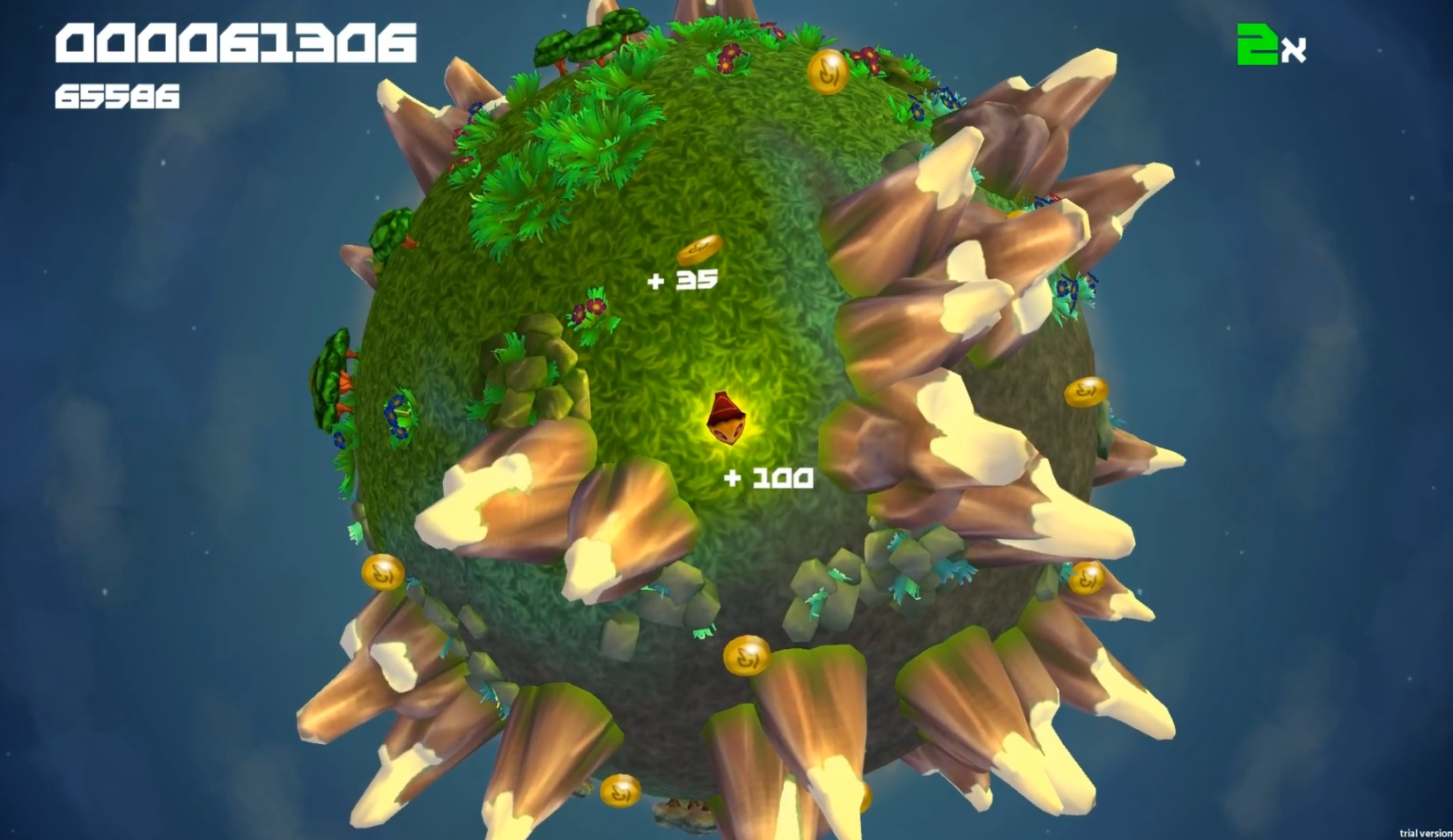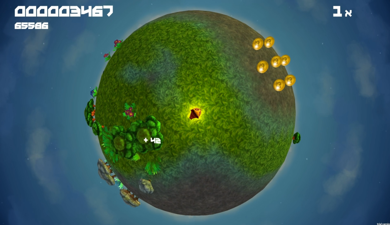 ‘There Will Be Mountains' is an simple arcade style game for touch and gamepad devices. The player moves around on a planet, terraforming the planet on its path. Erupting mountains have to be evaded which will increase in numbers further in the game.