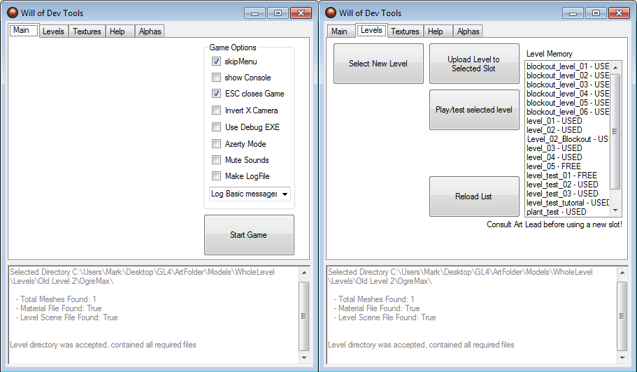 Ater recieving some feedback during development I wrote a specific tool that allowed artists (and designers!) to easily import levels from Maya to the engine, instantly converting models and material information (stuff like flagging material models with 32-bit texture "transparant"), taking away a lot of boring and repetative work for them.